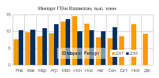 Аналогичная ситуация, только развернутая на 180 градусов, происходит на рынке полиэтилена низкой плотности. Неплохие показатели в августе, а именно 1,6 тыс. тонн, уже в начале следующего месяца были уменьшены до 1,4 тыс. тонн. Однако, данная проблема была вызвана не только снижения спроса, но и ограниченным предложением от российских производств, которые не успевали делать бОльшие объемы. В комплексе за весь анализируемый период Казахстан приробрел более 12 тыс. тонн изделий, что к сожалению, ниже на 17%, сравнивая с 2017 годом.